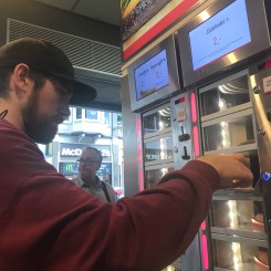 FEBO is a… restaurant …must do…hmmm, thing to do in Amsterdam. We had heard about FEBO but hadn’t done it until today. The basic concept is the food is in little heated compartments, you put in the exact amount of Euros and then the door opens and you take out your fare.